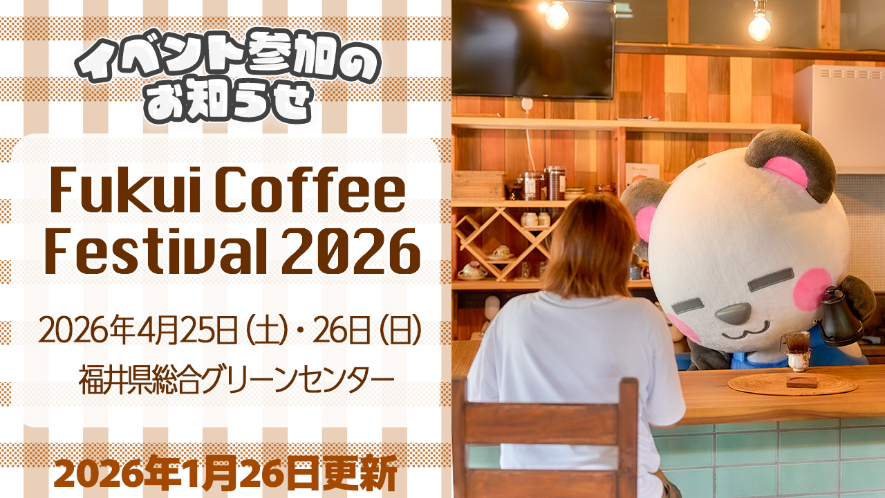 今日はとっても楽しみなお知らせがあるんだ。 なんと、4月に開催される「福井コーヒーフェスティバル2026」に、さんだーも遊びに行くことが決まりました!