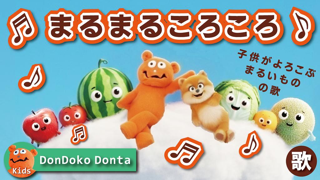 この歌では、身近な「まるいもの」をドンドコドンタとわんちゃんのキャラクターと一緒に学びます。