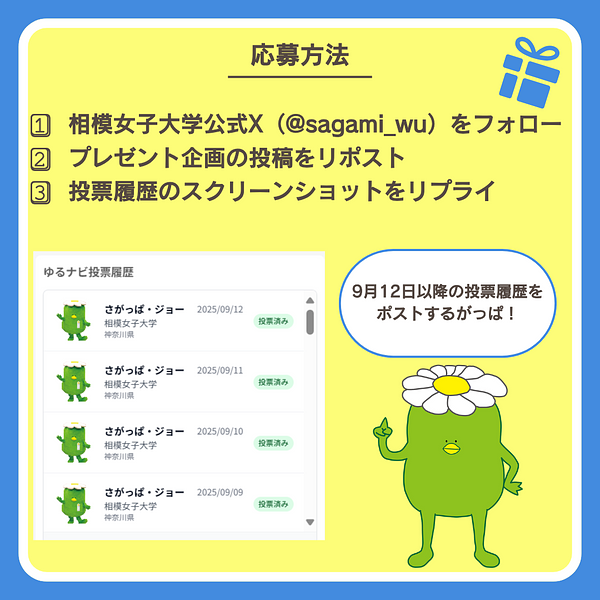 ① 本学のX公式アカウント「@sagami_wu」をフォロー