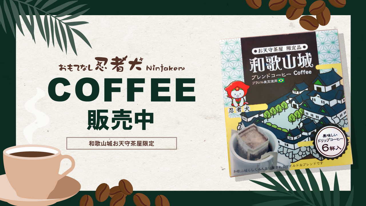 和歌山城にお越しの際は、ぜひお天守茶屋にお立ち寄りください。可愛いパッケージの「おもてなし忍者犬コーヒー」を手に取ってみてくださいね!