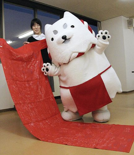 同協会は、1月のしっぺいの誕生日には、長さ2メートル40の巨大ふんどしをプレゼント。しっぺいは、市を通じて「これからもふんどしをしめて頑張ります」とコメントを発表した。