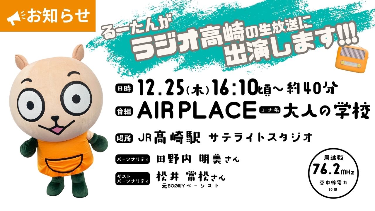 【お知らせ】 るーたんがラジオ高崎の生放送に出演します!