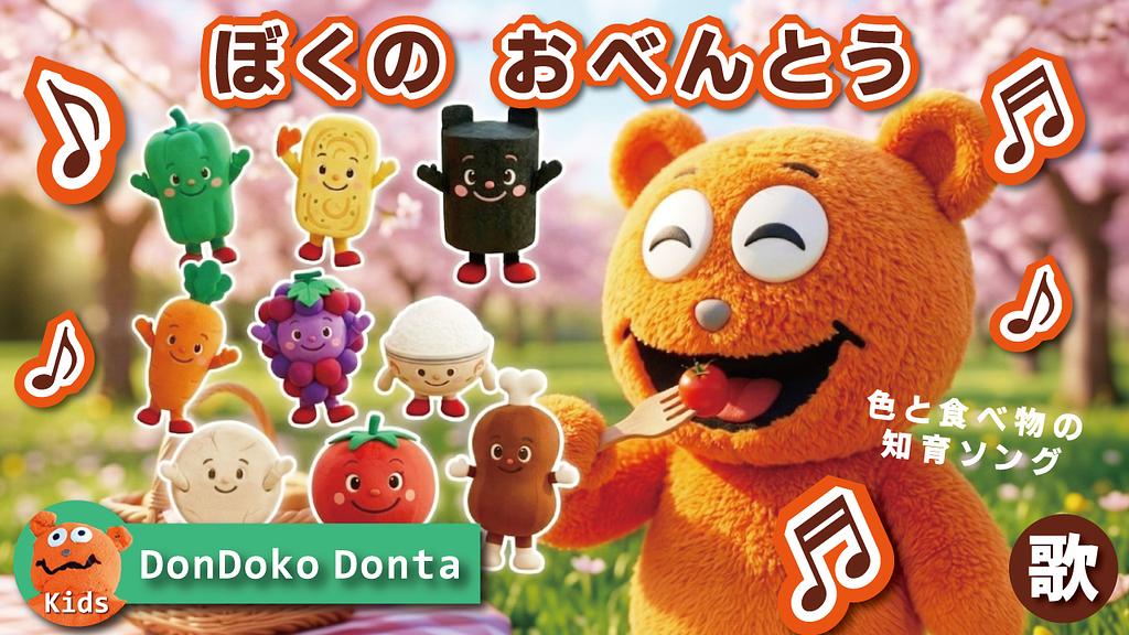ドンドコドンタのオリジナル曲紹介。子供が一緒に遊べるおすすめ曲3曲『ぼくのおべんとう』『まるまるころころ』『どてっこてっ』(2025年2026年公開動画)