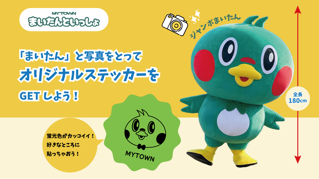 まいたんといっしょに写真を撮って、ステッカーGETしてね🐤♪
