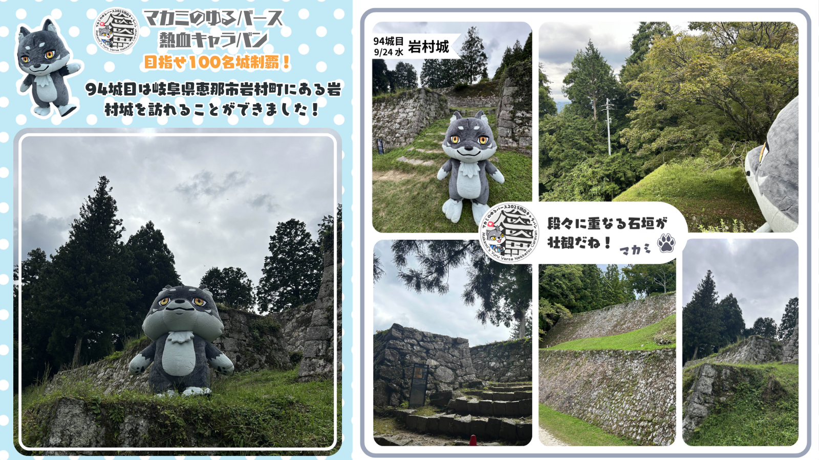 94城目はこちら✨岐阜県恵那市岩村町にある山城跡、 岩村城です!!層をなす石垣が圧巻です🐺✨標高が高いのでがんばって登ったあとはとっても気持ちがいいよ~🏯✨
