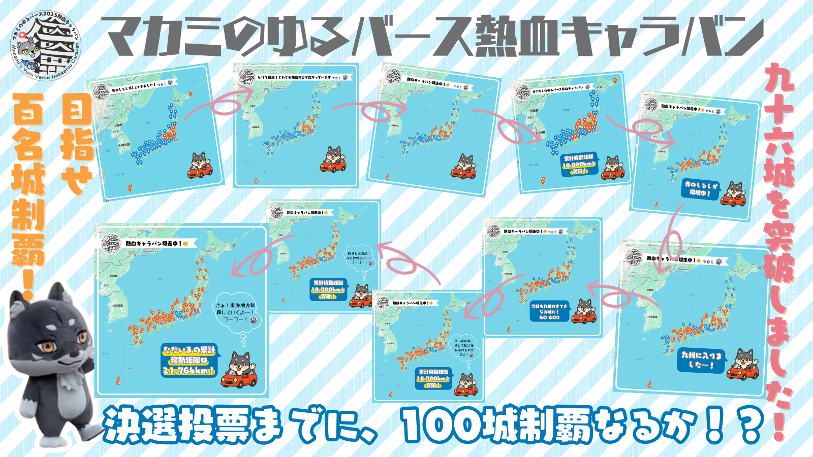 ゆるバース2025決選投票までに100名城すべてを巡る「マカミのゆるバース熱血キャラバン」にチャレンジしています🐺✨