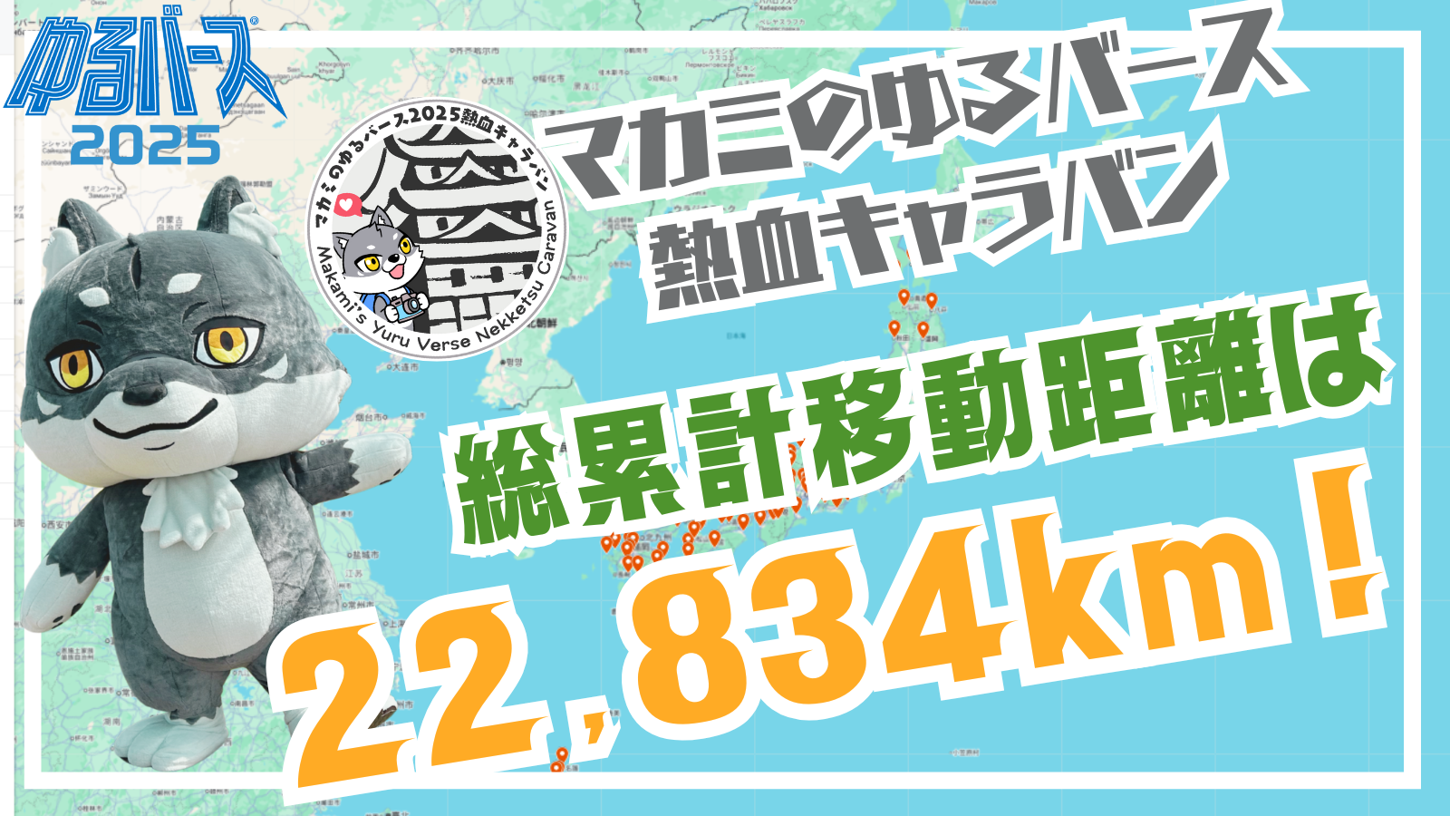 マカミのゆるバース熱血キャラバンで移動した距離ってどのくらい???そマカミのゆるバース熱血キャラバンで移動した距離ってどのくらい???総累計移そ動距離は.....どぅるるるるるるる.....じゃじゃん!!!!22,834kmでした~🐺🔥!