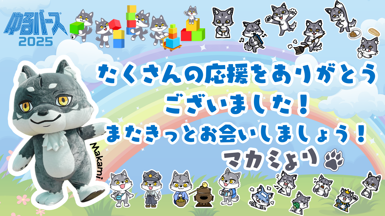 マカミへの応援本当にありがとうございました!🐺✨たくさんの方にお会いできてうれしかったです🌈ゆるバース2025本当にたのしかった🎶マカミは全国のお城とその地域を応援しています🏯✨もしあなたの住む近くのお城や旅行先のお城で会えたら、声かけてください🎶きっとまたお会いしましょう🐺✨