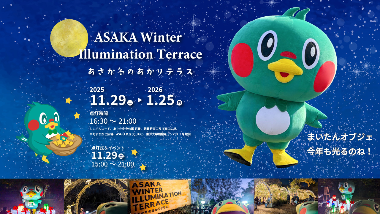 【光るまいたん!】あさか冬のあかりテラス2026【イルミネーション】